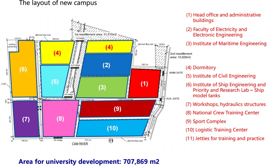 Sơ đồ tổng thể địa điểm mới của Trường Đại học Hàng hải Việt Nam tại Lâm Động, huyện Thủy Nguyên, Tp.Hải Phòng