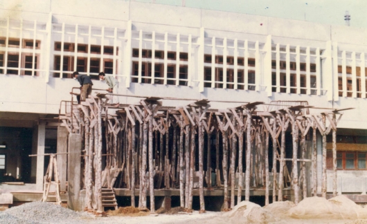 Quang cảnh xây dựng tiền sảnh Nhà A1 (Nhà Hiệu bộ hiện nay) năm 1987