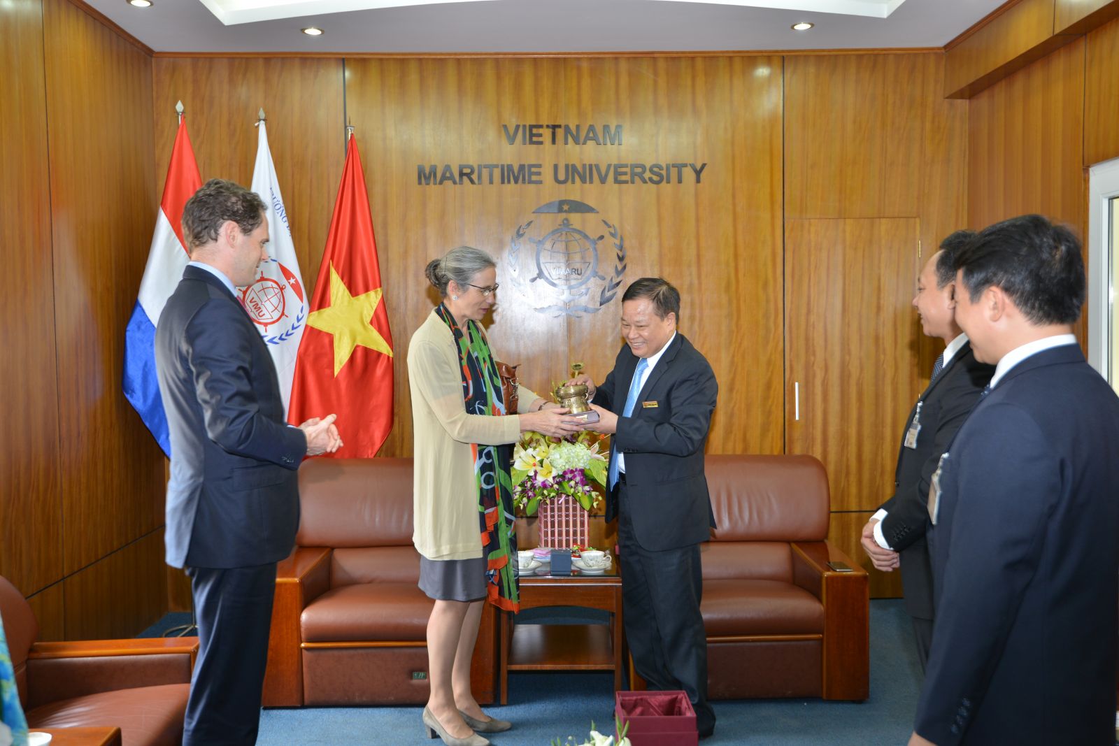 Sáng 26/11/2014, NGND.PGS.TS Lương Công Nhớ- Hiệu trưởng Trường Đại học Hàng hải Việt Nam đã có buổi đón tiếp và làm việc với Bà Nienke Trooster- Tân Đại sứ vương quốc Hà Lan tại Việt Nam. Cùng đi với đoàn có Ngài Bernhard Kelkes- Bí thư thứ nhất phụ trách kinh tế và thương mại và Bà Vũ Thị Diệp- Cố vấn cao cấp.