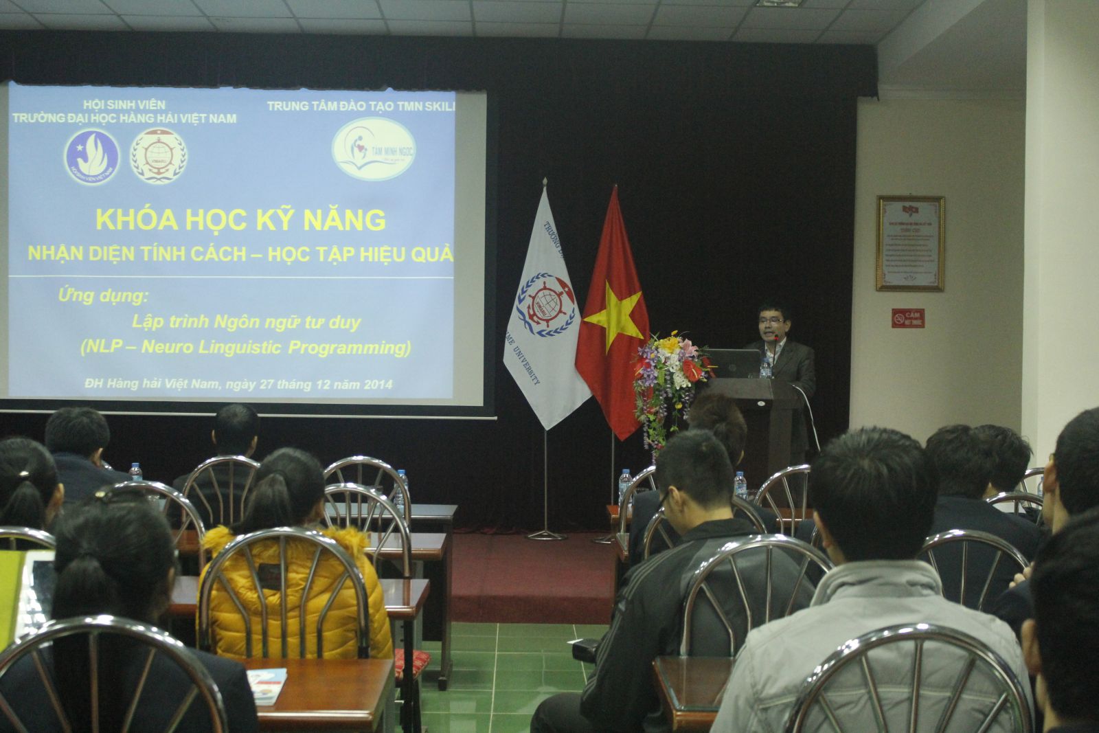 Thực hiện chương trình công tác Hội và phong trào sinh viên năm học 2014-2015; nhằm tiếp tục đẩy mạnh và triển khai phong trào “Sinh viên 5 tốt” do Trung ương Hội Sinh viên Việt Nam phát động; góp phần thực hiện thành công Nghị quyết Đại hội đại biểu Đoàn TNCS Hồ Chí Minh Nhà trường lần thứ XXXVII, sáng ngày 27/12/2014, tại Phòng Hội thảo quốc tế số 3 – Tầng 3 – Nhà A1, Đoàn Thanh niên - Hội Sinh viên Trường Đại học Hàng hải Việt Nam phối hợp cùng với Trung tâm Đào tạo kỹ năng TMN Skills tổ chức khóa học kỹ năng mềm với chủ đề “Kỹ năng nhận diện tính cách - Học tập hiệu quả” (Ứng dụng Ngôn ngữ Lập trình Tư duy - NLP). Khóa học là hoạt động thiết thực của Hội Sinh viên Nhà trường nhằm góp phần xây dựng hình ảnh “Sinh viên 5 tốt” trong đó có tiêu chuẩn “Sinh viên hoạt động tốt”. Đây cũng là hoạt động thiết thực góp phần thực hiện Nghị quyết và chỉ tiêu của Đại hội Đoàn trường lần thứ XXXVII về triển khai phong trào “Đồng hành với thanh niên lập thân, lập nghiệp”, trong đó có “Đồng hành với thanh niên trong việc nâng cao kiến thức và kỹ năng hoạt động xã hội”.