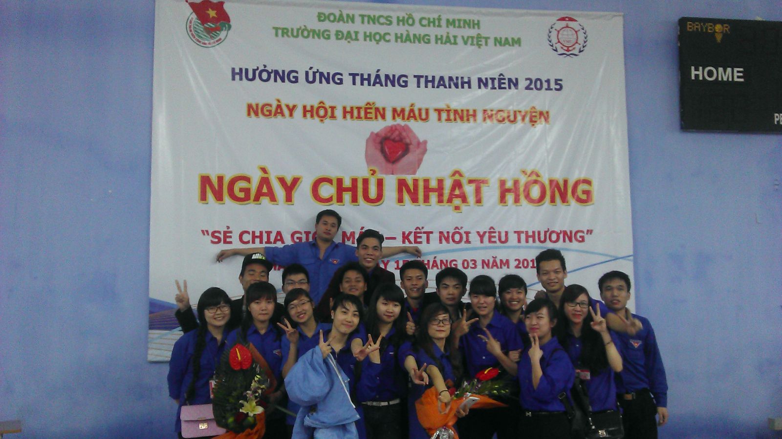 Thực hiện chỉ đạo của Thành đoàn Hải Phòng về việc triển khai các hoạt động trong Tháng Thanh niên 2015, thực hiện chỉ đạo của Ban chỉ đạo Vận động Hiến máu tình nguyện thành phố Hải Phòng và đề nghị của Trung tâm Huyết học truyền máu - Bệnh viện Việt Tiệp về việc tổ chức hoạt động Hiến máu nhân đạo trong tháng 3 năm 2015; Được sự chỉ đạo của Đảng ủy, Ban Giám hiệu Nhà trường, nhằm phát huy tinh thần xung kích tình nguyện, tương thân tương ái của tuổi trẻ, sáng ngày 15 tháng 3 năm 2015, Đoàn TNCS Hồ Chí Minh Trường Đại học Hàng hải Việt Nam đã tổ chức Ngày hội Hiến máu tình nguyện mang tên “Ngày Chủ Nhật Hồng” – hoạt động năm trong chuỗi hoạt động hưởng ứng Tháng Thanh niên năm 2015.
