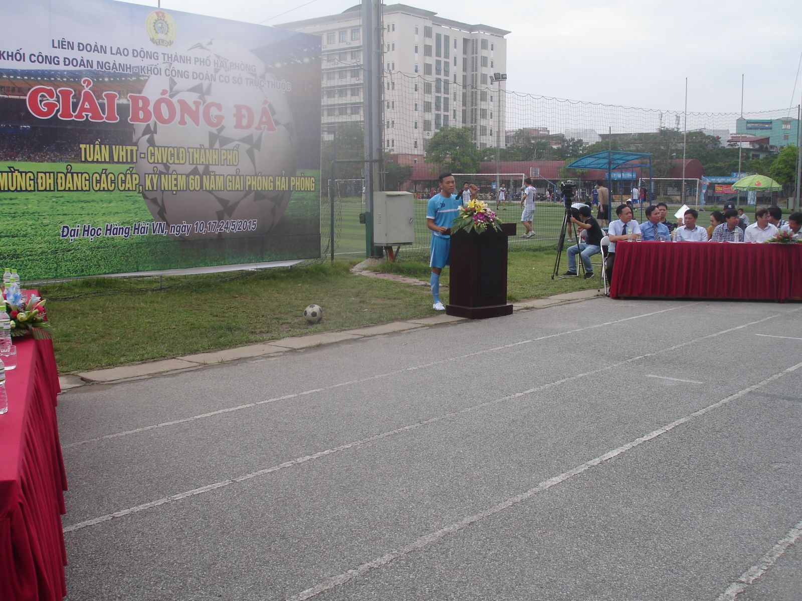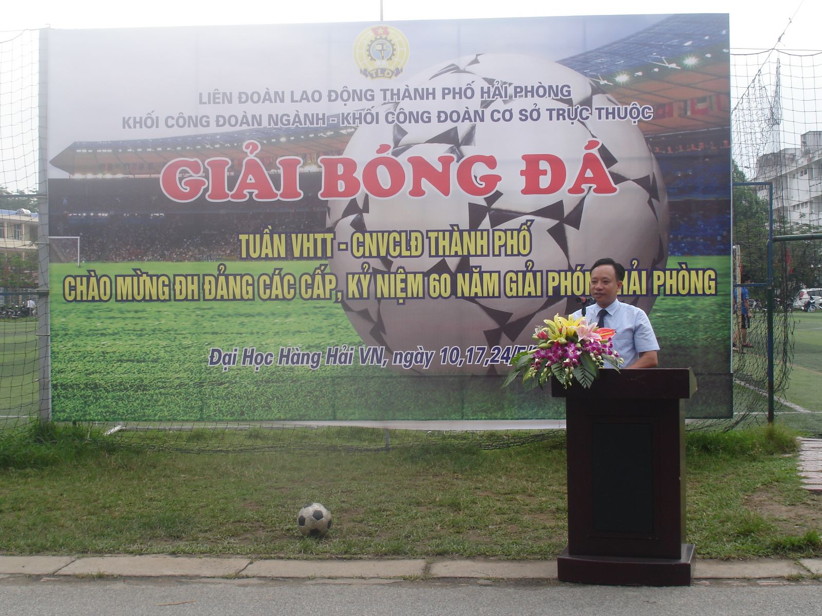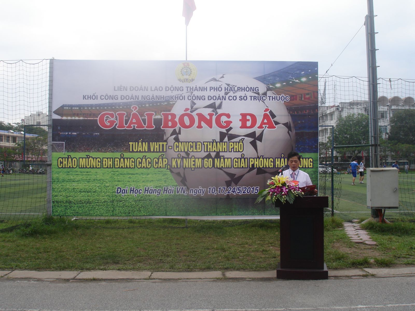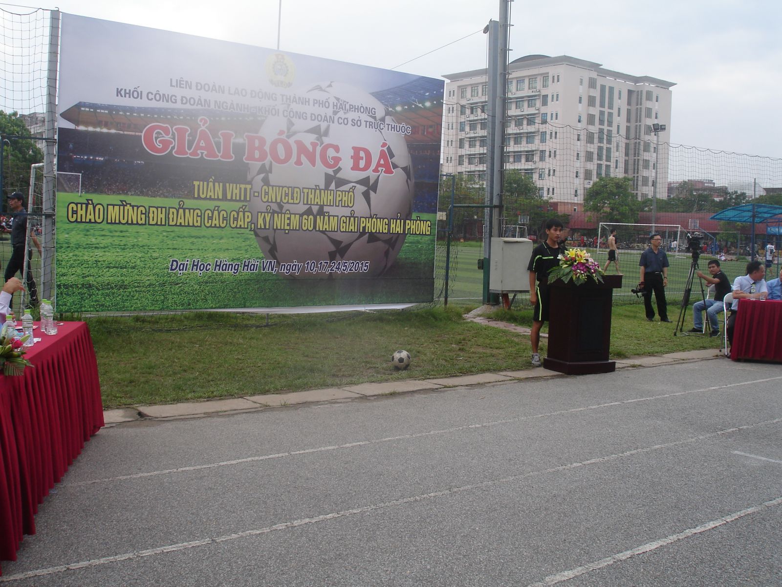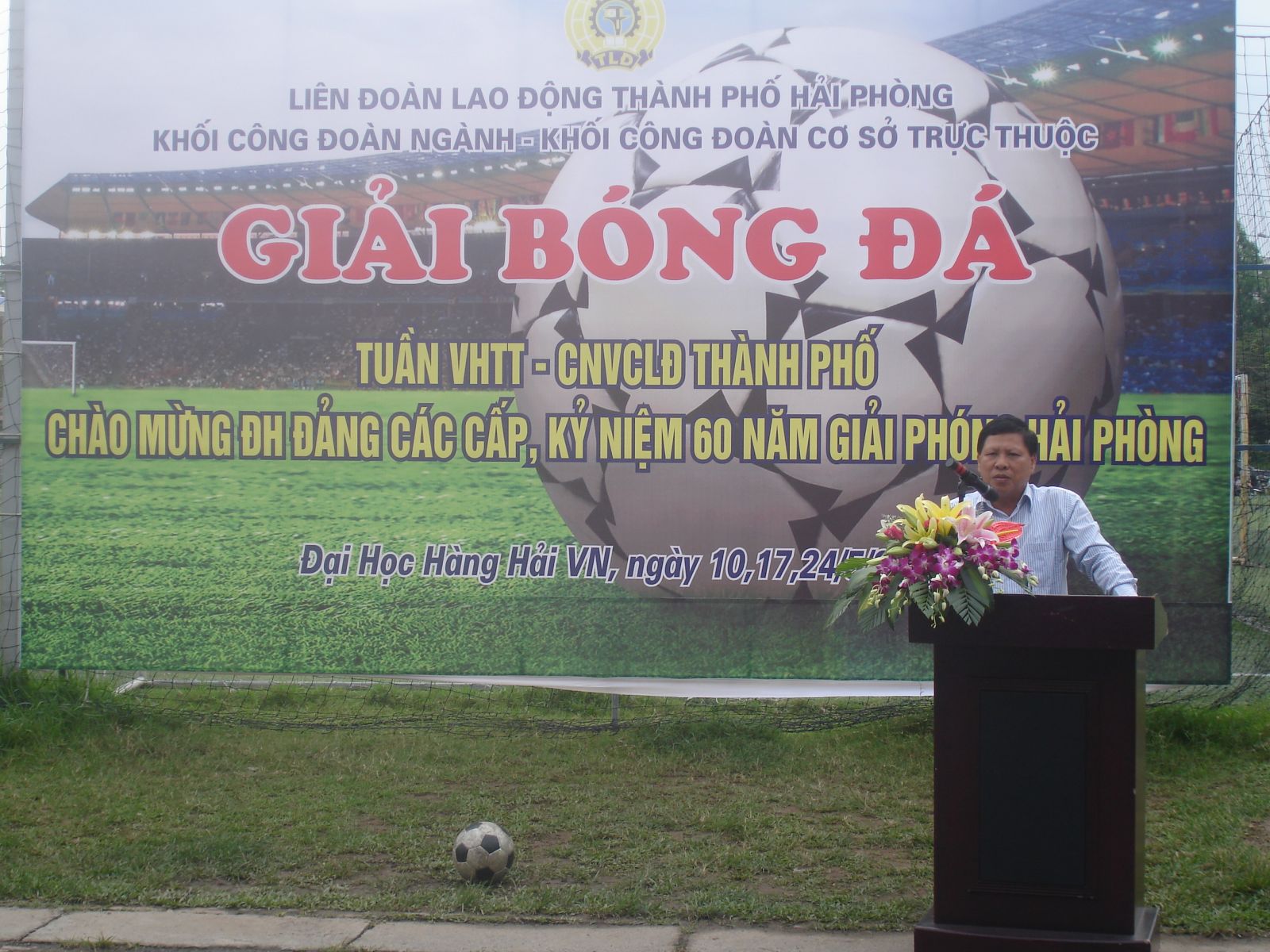 Thực hiện Kế hoạch số 25/KH-LĐLĐ ngày 11/3/2015 của Liên đoàn lao động Thành phố Hải Phòng về tổ chức các hoạt động Tuần VHTT - CNVCLĐ chào mừng Đại hội Đảng các cấp và kỷ niệm 60 năm ngày Giải phóng Hải Phòng, Liên đoàn lao động Thành phố phối hợp cùng Công đoàn Trường Đại học Hàng hải Việt Nam tổ chức giải bóng đá mini cho Khối Công đoàn Ngành và Khối Công đoàn Cơ sở. Tới dự với Lễ Khai mạc có các đồng chí là lãnh đạo Liên đoàn Lao động Thành phố Hải Phòng, Thủ trưởng các đơn vị, Chủ tịch, Phó Chủ tịch Công đoàn các đơn vị trong Khối thi đua, các trưởng đoàn, huấn luyện viên, vận động viên tham gia giải, đại diện Đài phát thanh và truyền hình Hải Phòng, Báo Hải Phòng, Báo Lao động Hải Phòng.