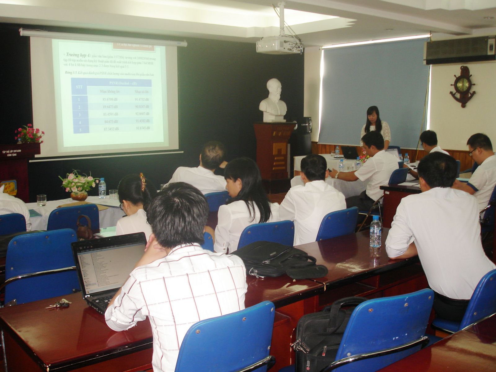 Tại buổi nghiệm thu, các chủ nhiệm đề tài đã trình bày báo cáo tóm tắt kết quả nghiên cứu. Nội dung các đề tài hướng tới nghiên cứu giải pháp công nghệ và thực tiễn như phương pháp xử lý tín hiệu số; mục tiêu trên biển sử dụng hải đồ số;nghiên cứu và cài đặt những bộ lọc tín hiệu âm thanh số chuẩn PCM; xây dựng bộ siêu dữ liệu ứng dụng để tự động tạo các biểu mẫu báo cáo thống kê kết xuất với cơ sở dữ liệu nhằm mục đích phục vụ công tác đào tạo, và quản lý tại Nhà trường.