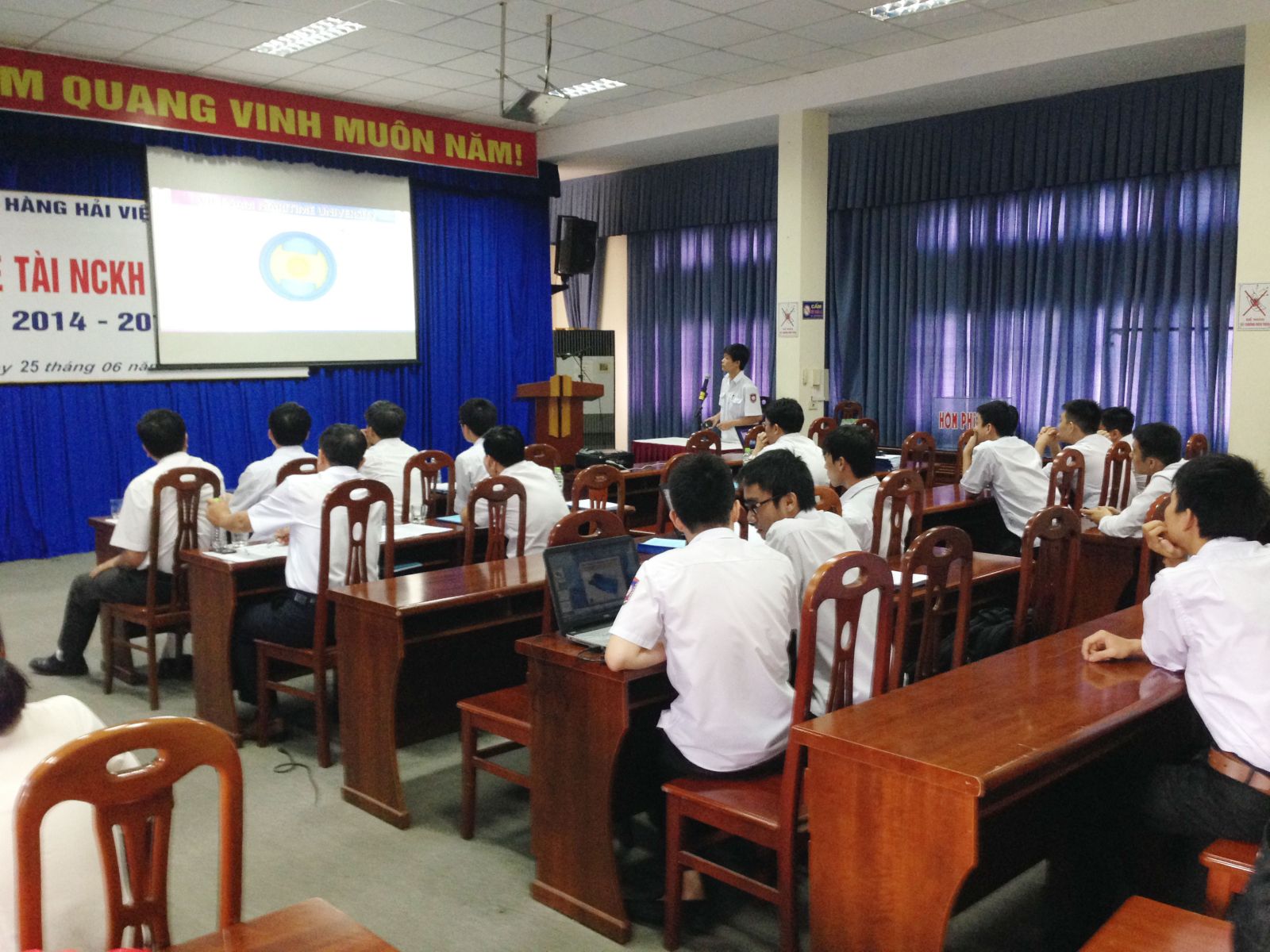 Nhằm mục đích tạo cơ hội cho sinh viên phát triển tư duy sáng tạo, ý tưởng khoa học đồng thời phát huy truyền thống say mê nghiên cứu khoa học, 07h00 ngày 25/6/2015, tại Phòng HTQT số 1 Trường Đại học Hàng hải Việt Nam đã tổ chức nghiệm thu 15 công trình nghiên cứu khoa học cấp Trường của sinh viên năm học 2014-2015.