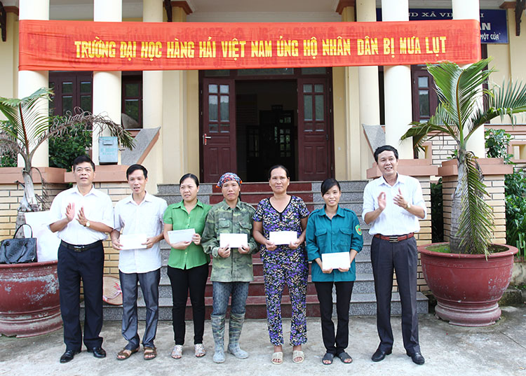 Ngày 11/9/2015, Nhà trường đã cử Đoàn công tác do Phó Giáo sư, TS Nguyễn Cảnh Sơn- Phó Hiệu trưởng làm Trưởng đoàn, cùng đi có các đồng chí đại diện cho BCH Công đoàn Trường, BCH Đoàn Thanh niên và một số cán bộ phòng ban chức năng đã về tận địa bàn hai xã và trao tặng số tiền 100 triệu đồng hỗ trợ nhân dân huyện đảo Cát Hải khắc phục thiên tai, mưa lũ, ổn định cuộc sống, phát triển SXKD.