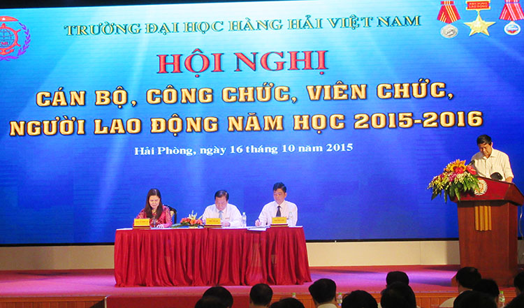 Trên cơ sở tiếp tục thực hiện Nghị quyết Đại hội đảng toàn quốc lần thứ XI; Nghị quyết số 29-NQ/TW ngày 04 tháng 11 năm 2013 Hội nghị lần thứ tám Ban chấp hành Trung ương khóa XI về đổi mới căn bản, toàn diện giáo dục và đào tạo, đáp ứng yêu cầu công nghiệp hóa, hiện đại hóa trong điều kiện kinh tế thị trường định hướng xã hội chủ nghĩa và hội nhập quốc tế; Nghị quyết 44/CP, Chương trình hành động của Chính phủ thực hiện Nghị quyết số 29-NQ/TW; là năm học thứ tư thực hiện Luật giáo dục năm 2009, là năm tiếp tục đẩy mạnh triển khai thực hiện Nghị quyết số 35/2009/NQ-QH12, ngày 19/6/2009 của Quốc hội về chủ trương định hướng đổi mới cơ chế quản lý tài chính trong GD&ĐT từ năm học 2010-2011 đến năm học 2014-2015. Với các mục tiêu đó Hội nghị CB, CC, VC và NLĐ của Trường Đại học Hàng hải Việt Nam đã thực hiện tổng kết, đánh giá lại tình hình thực hiện nhiệm vụ Nghị quyết Hội nghị Đại biểu Công chức-viên chức năm học 2014-2015 với các mặt hoạt động về: công tác tuyển sinh ĐH, CĐ năm 2015; công tác xây dựng chương trình đào tạo, mở ngành đào tạo mới và biên soạn giáo trình bài giảng; việc thực hiện chuẩn đầu ra tốt nghiệp, công tác đào tạo sau đại học, đào tạo và huấn luyện sỹ quan Hàng hải, hợp tác và quan hệ quốc tế, cơ sở vật chất phục vụ công tác giảng dạy, học tập, nghiên cứu khoa học,... Một nhiệm vụ quan trọng khác của hội nghị là đúc kết những kết quả, kinh nghiệm đạt được trong năm học qua để tiếp tục phát huy các mặt ưu điểm, đồng thời cùng tháo gỡ những khó khăn, khắc phục những hạn chế còn tồn tại; đề ra phương hướng nhiệm vụ chiến lược cho năm học mới 2015-2016.