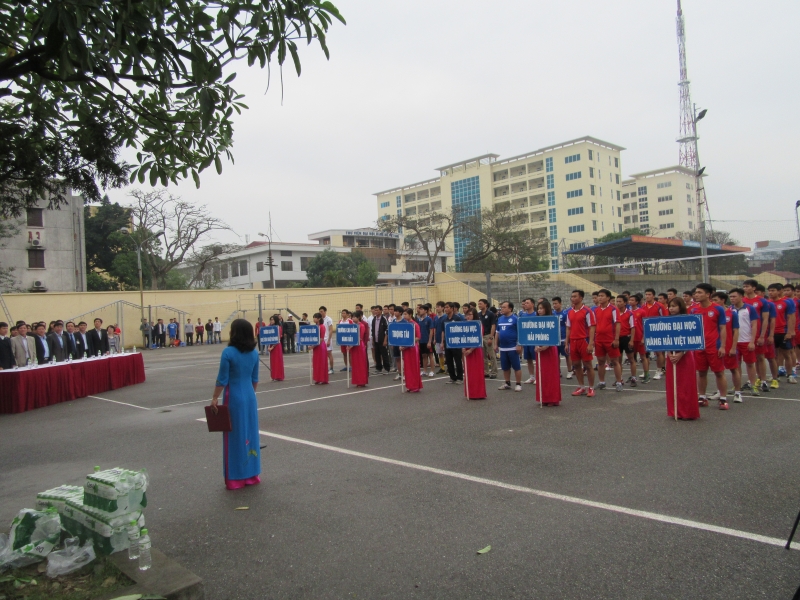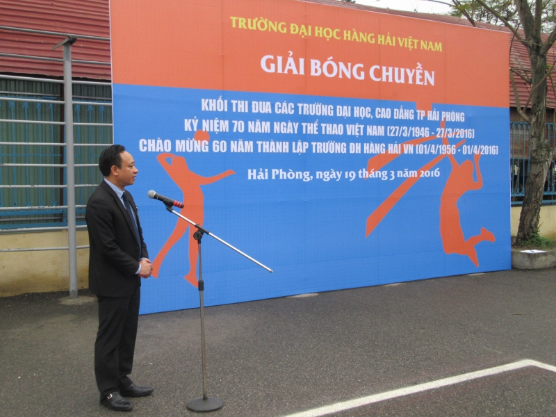 Thực hiện kế hoạch số 861/KH-ĐHHHVN ngày 27 tháng 10 năm 2015 của Trường Đại học Hàng hải Việt Nam về việc tổ chức các hoạt động văn nghệ, thể thao năm học 2015-2016, công văn số 142/ĐHHHVN ngày 26/02/2016 về việc mời tham gia giải bóng chuyền nam giao lưu Khối thi đua các Trường Đại học, Cao đẳng thành phố Hải Phòng nhân dịp kỷ niệm 70 năm ngày thể theo Việt Nam, 60 năm ngày thành lập Trường Đại học Hàng hải Việt Nam và đón nhận danh hiệu anh hùng lực lượng vũ trang nhân dân, 08h30 ngày 19/3/2016 tại Sân vận động, Trường Đại học Hàng hải Việt Nam tổ chức Khai mạc giải bóng chuyền nam giao lưu Khối thi đua các Trường Đại học, Cao đẳng thành phố Hải Phòng.