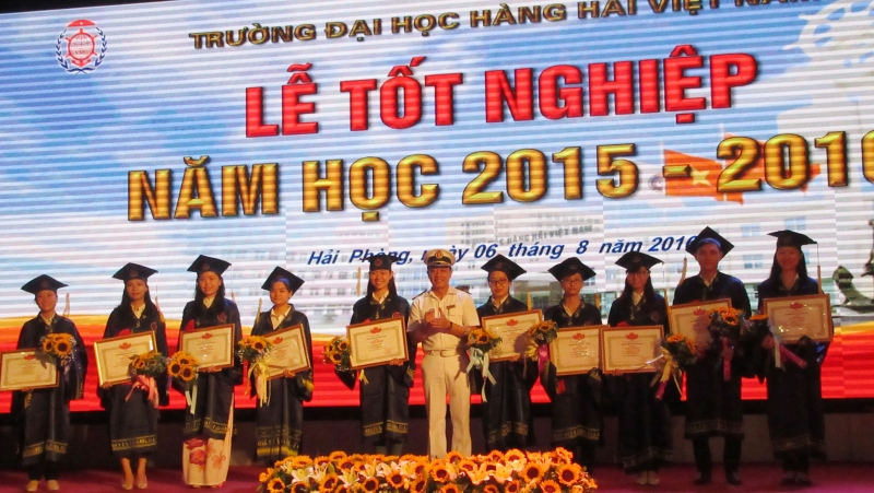 08h00 ngày 06/08/2016 tại Hội trường lớn, Trường Đại học Hàng hải Việt Nam đã long trọng tổ chức Lễ tốt nghiệp Đại học, cao đẳng năm học 2015-2016 cho các Tân cử nhân, kỹ sư. Tới dự với buổi lễ có NGND.PGS.TS Lương Công Nhớ - Bí thư Đảng ủy, Hiệu trưởng Nhà trường; các đồng chí trong BCH Đảng ủy, Ban Giám hiệu, Công đoàn, Đoàn TN, Thủ trưởng các đơn vị, Ban Chủ nhiệm, Giáo vụ các Khoa, Viện, và 683 tân cử nhân, kỹ sư đại diện cho 1360 sinh viên tốt nghiệp năm học 2015-2016 cùng đông đảo bạn bè, gia đình đến chia vui và chúc mừng cho các Tân cử nhân, kỹ sư.