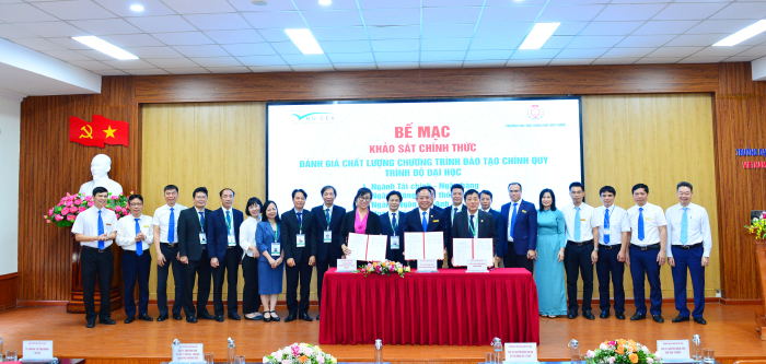 Kết thúc buổi bế mạc, GS.TS. Mai Trọng Nhuận, TS. Tạ Thị Thu Hiền và PGS.TS. Phạm Xuân Dương đã ký kết Biên bản hoàn thành đợt khảo sát chính thức đánh giá chất lượng CTĐT 04 ngành: ngành Tài chính - Ngân hàng (Khoa Quản trị - Tài chính), ngành Công nghệ thông tin (Khoa Công nghệ thông tin), ngành Ngôn ngữ Anh (Khoa Ngoại ngữ), ngành Kỹ thuật điều khiển và tự động hóa (Khoa Điện - Điện tử) trình độ đại học theo tiêu chuẩn của Bộ GD & ĐT.