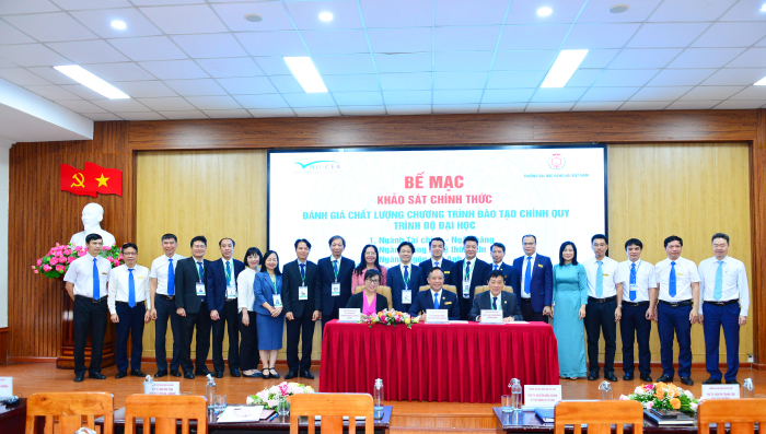 Sau 5 ngày làm việc khẩn trương, nghiêm túc, trách nhiệm và hiệu quả, chiều 12/6, Trường Đại học Hàng hải Việt Nam cùng Đoàn chuyên gia Đánh giá ngoài và Trung tâm Kiểm định chất lượng giáo dục - Đại học Quốc gia Hà Nội (KĐCLGD - ĐHQGHN) tổ chức bế mạc Khảo sát chính thức đánh giá chất lượng chương trình đào tạo (CTĐT) chính quy trình độ đại học cho 04 ngành theo tiêu chuẩn Bộ GD&ĐT.