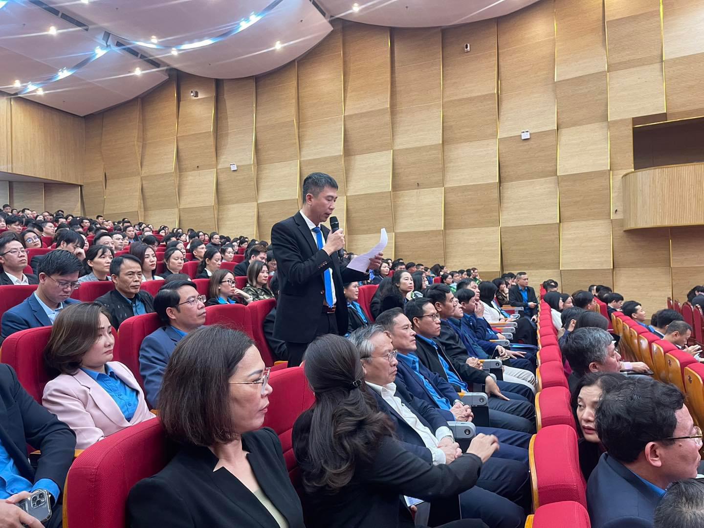 Cử tri Nguyễn Công Vịnh - Chủ tịch Công đoàn Trường Đại học Hàng hải Việt Nam phát biểu ý kiến tại Hội nghị