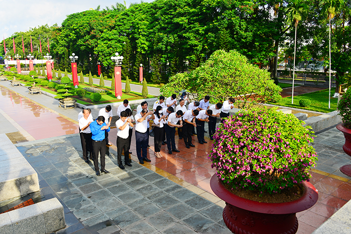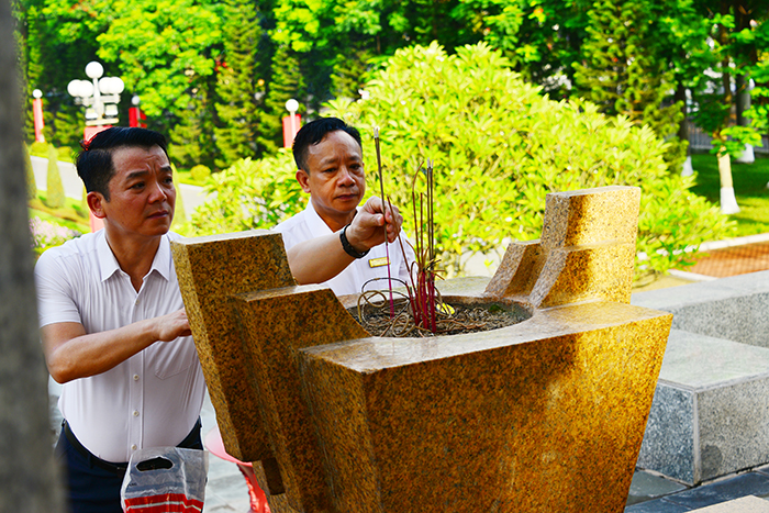 Trong không khí trang nghiêm, các đồng chí trong Đoàn đã thành kính dâng hoa, thắp hương trước lễ đài và dành một phút tưởng niệm để tỏ lòng biết ơn sâu sắc các Anh hùng liệt sỹ, đời đời nhớ ơn các Anh hùng, Liệt sĩ và các Bà mẹ Việt Nam anh hùng; nguyện đem hết sức mình xây dựng Trường Đại học hàng hải Việt Nam phát triển nhanh, bền vững, xứng đáng với danh hiệu trường đại học Anh hùng, trường trọng điểm quốc gia, góp phần quan trọng vào sự nghiệp trồng người, đào tạo nguồn nhân lực chất lượng cao cho đất nước và thành phố Hải Phòng; phấn đấu vì mục tiêu dân giàu, nước mạnh, dân chủ, công bằng văn minh.