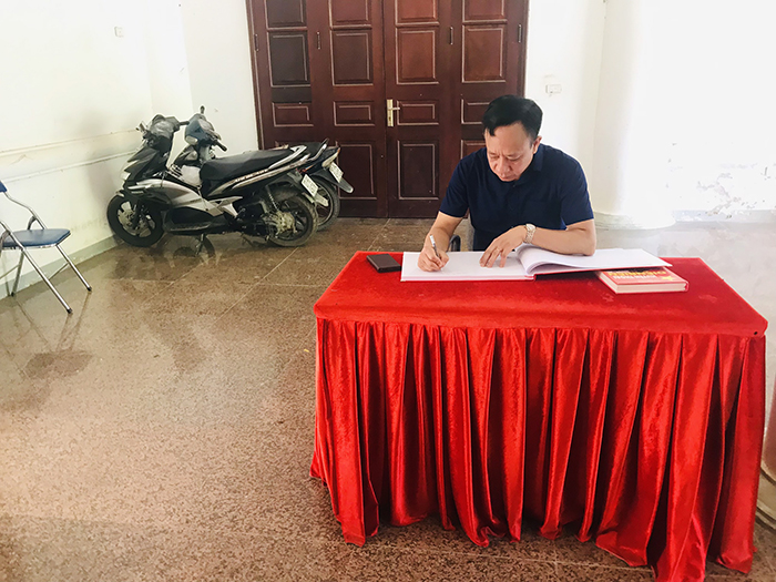 PGS.TS Phạm Xuân Dương - Hiệu trưởng Nhà trường đã đặt lưu bút tại nơi di tích lịch sử này | |
