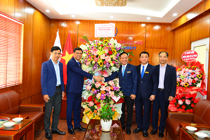 Đồng chí Nguyễn Xuân Sang - Ủy viên Ban Cán sự đảng, Thứ trưởng Bộ GTVT tặng hoa chúc mừng Trường Đại học Hàng hải Việt Nam nhân Ngày Nhà giáo Việt Nam 20/11