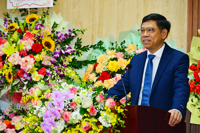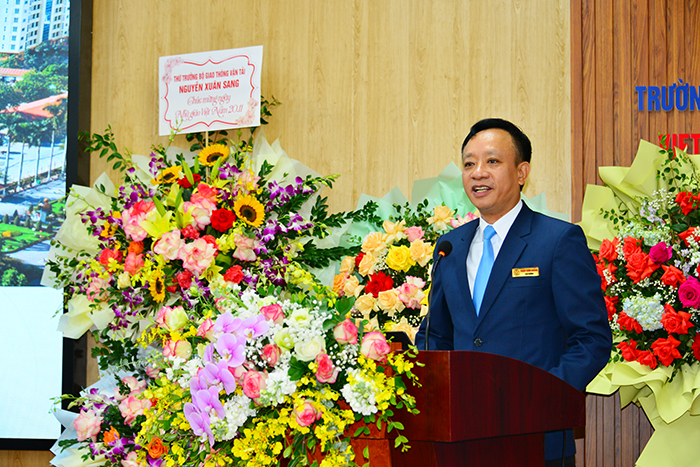 Đồng chí Nguyễn Xuân Sang - Ủy viên Ban Cán sự đảng, Thứ trưởng Bộ GTVT phát biểu chúc mừng các thầy giáo, cô giáo Nhà trường qua các thế hệ