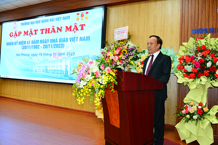 Phát biểu chào mừng tại buổi Gặp mặt, PGS.TS. Phạm Xuân Dương - Hiệu trưởng nhấn mạnh: Trải qua hơn 67 năm xây dựng và phát triển, Trường Đại học Hàng hải Việt Nam đã đạt được những thành tích rất đáng tự hào góp phần phục vụ cho sự nghiệp phát triển kinh tế - xã hội, đảm bảo an ninh - quốc phòng của thành phố Hải Phòng, ngành Giao thông vận tải và đất nước. Vinh quang thuộc về các thế hệ nối tiếp các nhà giáo đã và đang cần mẫn, tận tâm ngày đêm đóng góp quan trọng và quyết định đến việc ươm trồng các thế hệ các nhà quản lý và chuyên gia cho đất nước, “…từng gốc cây, ngọn cỏ, từng viên gạch xây lên đều là nhưng giọt mồ hôi, sương máu của các thế hệ nối tiếp ấy...”