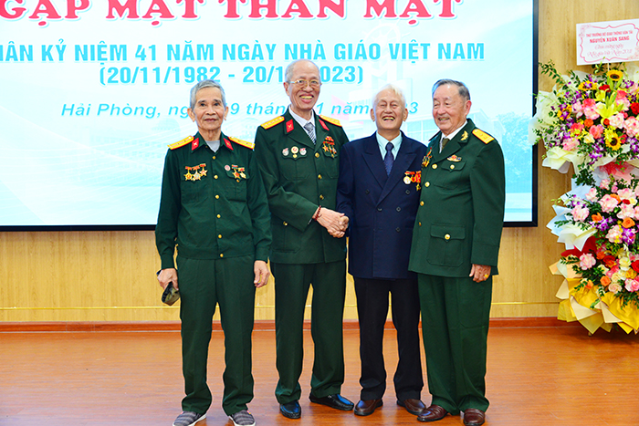 Đặc biệt, tới dự và chúc mừng Ngày Nhà giáo Việt Nam 20/11 còn có các Cựu Chiến binh - Cựu Sinh viên Nhà trường trong phong trào “Xếp bút nghiên lên đường ra trận” những năm 1964-1979. Chiến công vang dội của các bác trên khắp các mặt trận của Tổ quốc đã tô thắm thêm trang sử vẻ vang, hào hùng của Trường Đại học Hàng hải Việt Nam. Hôm nay, nhân Ngày Nhà giáo Việt Nam 20/11, mặc dù tuổi đã cao nhưng các bác đã không quản ngại đường sá xa xôi, từ mọi miền của Tổ quốc tụ họp dưới Mái trường này để tri ân các thế hệ thầy giáo, cô giáo, chúc mừng Nhà trường.