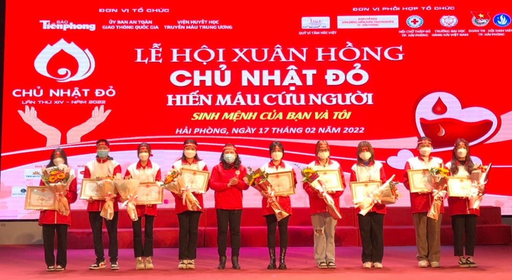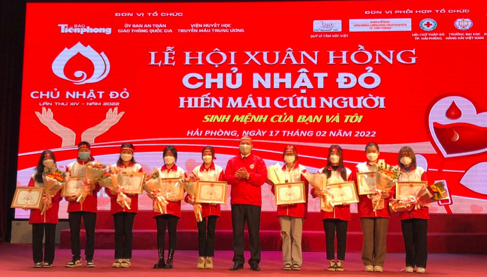08h00 ngày 17/02/2022, Trường Đại học Hàng hải Việt Nam phối hợp với Báo Tiền Phong, Hội Chữ thập đỏ Hải Phòng, Trung tâm huyết học truyền máu Hải Phòng, Thành Đoàn - Hội Sinh viên Thành phố Hải Phòng, tổ chức chương trình “Lễ hội Xuân hồng - Chủ nhật Đỏ lần thứ 14 năm 2022”. Chương trình được tổ chức với mục đích tuyên truyền, vận động các lực lượng xã hội tích cực hưởng ứng phong trào hiến máu tình nguyện, từng bước mở rộng đối tượng tham gia hiến máu, góp phần dự phòng tình trạng thiếu máu trong dịp Tết nguyên đán 2022 và dịch Covid-19 vẫn đang diễn ra.