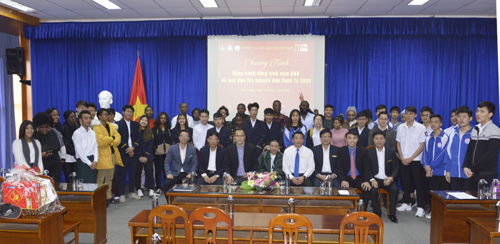 Những ngày giáp Tết đang đến gần, không khí đón xuân đã tràn ngập trên mỗi tuyến đường, con phố. Con người ta đều hướng về một năm mới với những khởi đầu mới đang chờ đón đồng thời muốn tìm về những gì gần gũi và thân thương. 09h00 ngày 16 tháng 1 năm 2020, nhân dịp đón Xuân Canh Tý, Trường Đại học Hàng hải Việt Nam đã tổ chức Chương trình tặng quà Tết sinh viên Quốc tế, sinh viên có hoàn cảnh gia đình khó khăn nhân dịp tết Nguyên đán Canh Tý 2020.