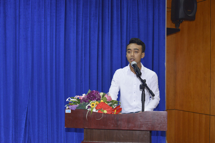 Sinh viên Than Win Tun – lớp MKT57CH phát biểu cảm ơn.