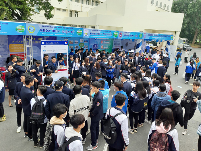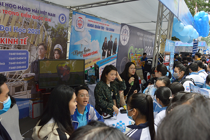 Nhiều hoạt động phong phú, bổ ích, thiết thực để lôi cuốn học sinh tham dự ở các điểm tư vấn của Trường Đại học Hàng hải Việt Nam. Tại các điểm này, các em học sinh sẽ được các anh chị sinh viên tình nguyện và các thầy cô giáo hỗ trợ, hướng dẫn tham gia các hoạt động, có cơ hội tìm hiểu thêm về đặc thù các ngành đào tạo, môi trường học tập, cơ hội việc làm sau khi ra trường, khoa đào tạo và tham quan Trường. Bên cạnh đó, các em học sinh tiếp tục được các thầy cô phụ trách các ngành tư vấn, chia sẻ thêm thông tin, kiến thức, kinh nghiệm lựa chọn ngành nghề và môi trường đào tạo phù hợp để phát huy tốt nhất năng lực, sở trường cá nhân.