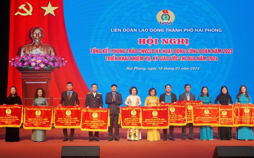 Sáng 16/01/2024, tại Hội trường Cung Văn hóa Lao động Hữu nghị Việt Tiệp, Liên đoàn lao động (LĐLĐ) Thành phố Hải Phòng đã tổ chức “Hội nghị tổng kết phong trào CNVCLĐ và hoạt động Công đoàn năm 2023, triển khai nhiệm vụ, ký giao ước thi đua năm 2024”. Tại Hội nghị, Công đoàn Trường Đại học Hàng hải Việt Nam vinh dự là 1 trong 9 đơn vị của thành phố được nhận Cờ thi đua của Tổng LĐLĐ Việt Nam vì đã có thành tích xuất sắc trong phong trào thi đua lao động giỏi và xây dựng tổ chức Công đoàn năm 2023. PGS.TS. Nguyễn Công Vịnh - Chủ tịch Công đoàn Trường đã thay mặt hơn 1.500 đoàn viên Công đoàn Nhà trường đón nhận Cờ thi đua của Tổng LĐLĐ Việt Nam.