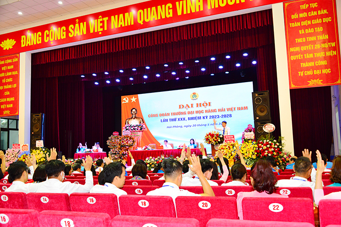 Sáng ngày 20/5/2023, Công đoàn Trường Đại học Hàng hải Việt Nam đã tổ chức Đại hội Đại biểu lần thứ XXX, nhiệm kỳ 2023-2028 với có sự góp mặt của 148 đại biểu chính thức - những cán bộ, đoàn viên tiêu biểu đại diện cho trên 1.500 đoàn viên, người lao động toàn Trường.