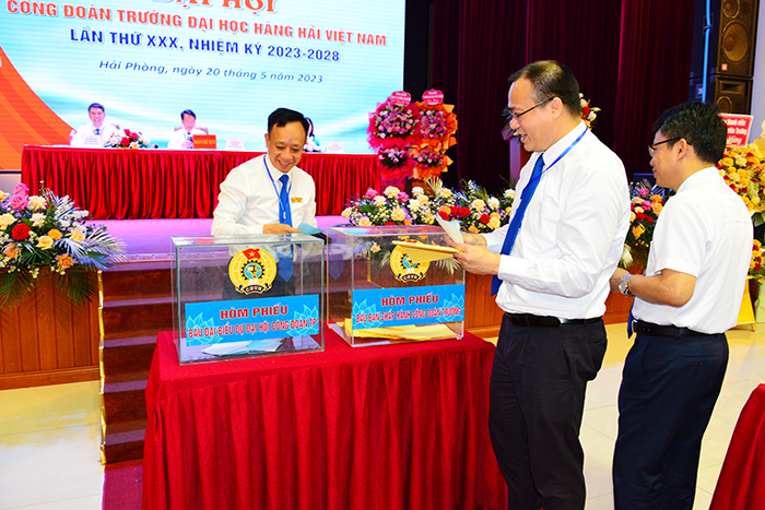 Với phương châm “Đổi mới - Dân chủ - Đoàn kết - Phát triển”, Đại hội đã dân chủ, tập trung trí tuệ, sáng suốt lựa chọn 15 đồng chí có đủ phẩm chất đạo đức, năng lực công tác, đảm bảo tiêu chuẩn và sự tín nhiệm của CB, VC, NLĐ Trường vào Ban Chấp hành Công đoàn Trường khóa XXX, nhiệm kỳ 2023- 2028 và 04 đồng chí đại biểu chính thức thay mặt cho toàn thể đoàn viên công đoàn Trường Đại học Hàng hải Việt Nam đi dự Đại hội XV Công đoàn Thành phố, nhiệm kỳ 2023-2028.