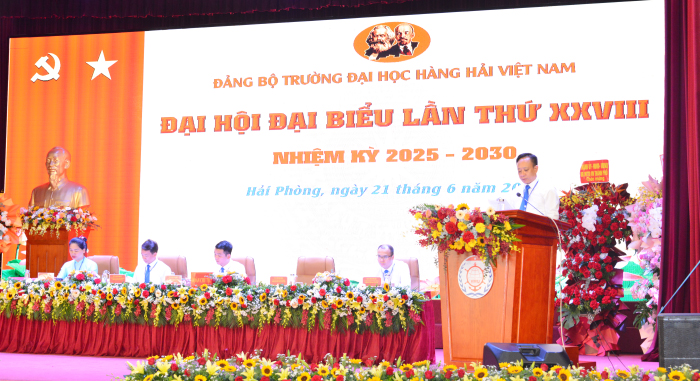 Sáng 21/6/2025, Đảng bộ Trường Đại học Hàng hải Việt Nam đã tiến hành tổ chức Đại hội Đại biểu lần thứ XXVIII nhiệm kỳ 2025-2030. Đây là sự kiện chính trị có ý nghĩa quan trọng, nhằm đánh giá kết quả thực hiện Nghị quyết Đại hội nhiệm kỳ 2020-2025, chỉ ra những tồn tại, hạn chế và nguyên nhân, từ đó xác định mục tiêu, chỉ tiêu, các khâu đột phá, phương hướng, nhiệm vụ và giải pháp nhiệm kỳ 2025 - 2030; đánh dấu bước trưởng thành và tầm vóc trách nhiệm mới, trong bối cảnh thành phố Hải Phòng đang có những bước phát triển mạnh mẽ, cùng đất nước vững bước tiến vào “kỷ nguyên mới - kỷ nguyên vươn mình của dân tộc”.