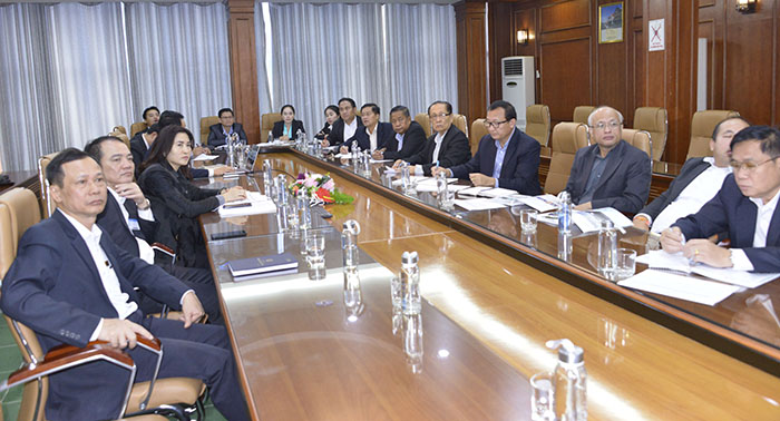PGS.TS Phạm Xuân Dương – Hiệu trưởng Trường ĐHHH Việt Nam tiếp đoàn Bộ Công chính và Vận tải Lào.
