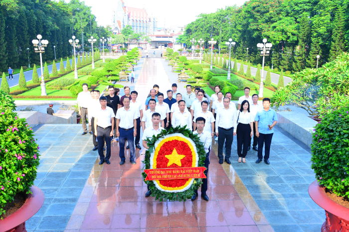 Tham dự lễ viếng có các đồng chí: PGS.TS. Nguyễn Khắc Khiêm - Bí thư Đảng ủy, Chủ tịch Hội đồng Trường; PGS.TS. Phạm Xuân Dương - Hiệu trưởng Nhà trường, cùng các đồng chí trong thường trực Đảng ủy, thường trực Hội đồng trường, Ban Giám hiệu, Công đoàn, Đoàn Thanh niên, Hội sinh viên, Trưởng các Phòng: Tổ chức - Hành chính, Đào tạo, Khoa học công nghệ, Quan hệ quốc tế, Thanh tra & Đảm bảo chất lượng, Công tác sinh viên, Quản trị thiết bị, Trung tâm Quốc phòng An ninh và thành viên Câu lạc bộ 27/7 của Nhà trường đã đến đặt vòng hoa, làm lễ, dâng hương tại Đài tưởng niệm anh hùng, liệt sĩ thành phố Hải Phòng.