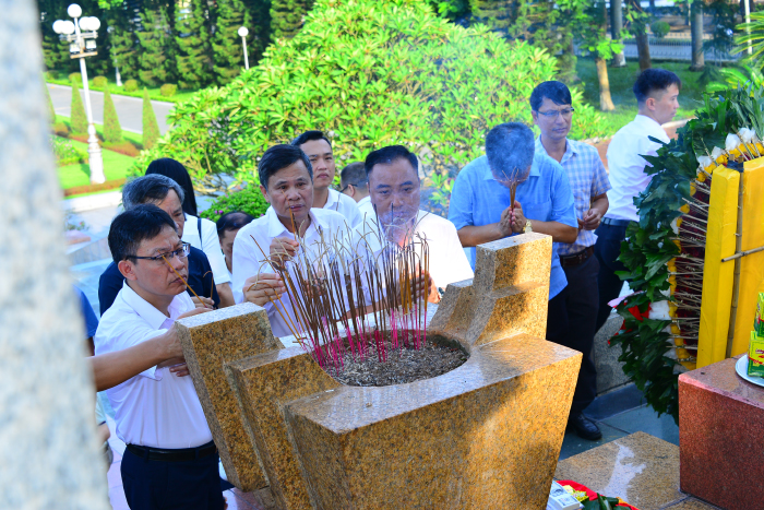 Trong không khí trang nghiêm, các đồng chí trong Đoàn đã thành kính dâng hoa, thắp hương trước lễ đài và dành một phút tưởng niệm để tỏ lòng biết ơn sâu sắc các Anh hùng liệt sỹ, đời đời nhớ ơn các Anh hùng, Liệt sĩ và các Bà mẹ Việt Nam anh hùng; nguyện đem hết sức mình xây dựng Trường Đại học hàng hải Việt Nam phát triển nhanh, bền vững, xứng đáng với danh hiệu trường đại học Anh hùng, trường trọng điểm quốc gia, góp phần quan trọng vào sự nghiệp trồng người, đào tạo nguồn nhân lực chất lượng cao cho đất nước và thành phố Hải Phòng; phấn đấu vì mục tiêu dân giàu, nước mạnh, dân chủ, công bằng văn minh.