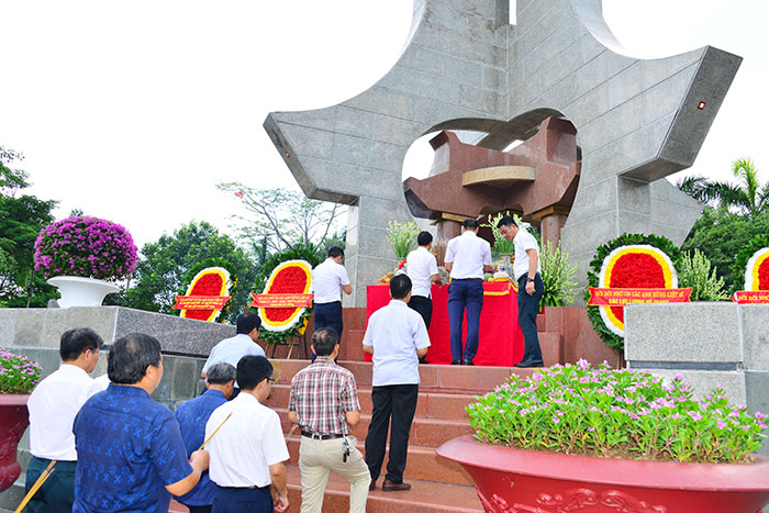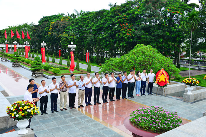 Tham dự lễ viếng có các đồng chí: PGS.TS Nguyễn Khắc Khiêm - Bí thư Đảng ủy, Chủ tịch Hội đồng Trường; PGS. TS Phạm Xuân Dương - Phó Bí thư Đảng ủy, Hiệu trưởng Nhà trường cùng các đồng chí trong BGH, Công đoàn, Đoàn Thanh niên của Nhà trường và thành viên Câu lạc bộ 27/7 đã đến đặt vòng hoa, làm lễ, dâng hương tại Đài tưởng niệm anh hùng, liệt sỹ Thành phố.