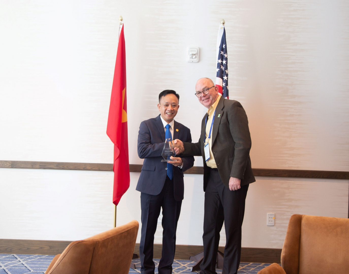 Trong khuôn khổ chuyến thăm và làm việc tại Hoa Kỳ, PGS.TS. Phạm Xuân Dương - Hiệu trưởng Trường ĐHHH Việt Nam đã vinh dự đại diện cho Nhà trường nhận kỷ niệm chương “Đơn vị xuất sắc triển khai MOS trong trường học” do Tập đoàn Khảo thí Tin học hàng đầu thế giới Certiport (Hoa Kỳ) trao tặng. Đây là phần thưởng cao quý ghi nhận những cố gắng và kết quả đáng tự hào mà Trường ĐHHHVN đã đạt được trong việc tiên phong đưa chương trình Tin học MOS quốc tế vào giảng dạy trong Nhà trường những năm qua.