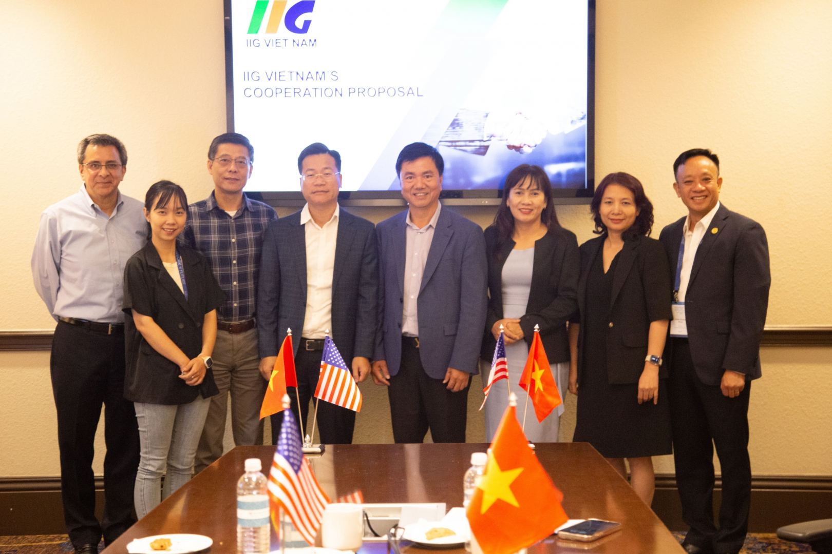 Ngài Craig Bushman - Tổng Giám đốc Certiport Hoa Kỳ, Trưởng Ban tổ chức và ông Đoàn Hồng Nam - Chủ tịch IIG Việt Nam chụp ảnh lưu niệm cùng Đoàn đại biểu Trường Đại học Hàng hải Việt Nam