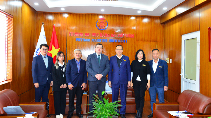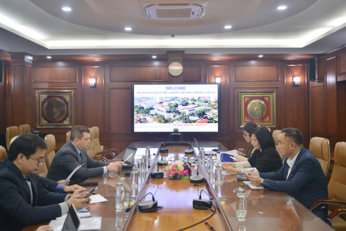 Chiều 27/02/2025, Trường Đại học Hàng hải Việt Nam đã đón tiếp và làm việc với Công ty DBF Logistics Vietnam Co. Ltd., đánh dấu bước tiến quan trọng trong việc tăng cường quan hệ hợp tác giữa Nhà trường và doanh nghiệp trong lĩnh vực logistics. Tiếp Đoàn có PGS.TS. Nguyễn Minh Đức - Phó Hiệu trưởng Nhà trường, đại diện các Phòng Công tác sinh viên và Phòng Quan hệ quốc tế.