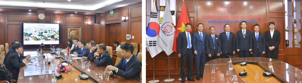 Tại buổi làm việc, hai Trường trao đổi, thống nhất tiến đến ký kết Biên bản hợp tác toàn diện trong lĩnh vực đào tạo, huấn luyện và nghiên cứu khoa học, dự kiến sẽ được trao tại Diễn đàn các Trường Đại học Hàng hải và Đánh cá châu Á (AMFUF) tổ chức tại Indonesia từ ngày 22/10 đến 24/10. Hai bên tập trung trao đổi về chương trình liên kết đào tạo 2+2, hướng tới việc tiếp nhận sinh viên của Trường Đại học Hàng hải Việt Nam sang học tập tại KMOU vào năm 2028. Hai bên cũng thảo luận về chương trình trao đổi giảng viên, sinh viên ngắn hạn (3-4 tuần) nhằm giảng dạy và tham gia các học phần phù hợp với nhu cầu của mỗi bên, đồng thời đề xuất các hướng hợp tác nghiên cứu khoa học trong lĩnh vực hàng hải và hải dương học