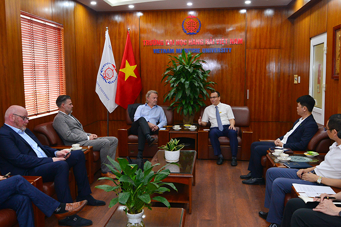 Tại buổi làm việc, PGS.TS. Nguyễn Minh Đức - Phó Hiệu trưởng Nhà trường đã giới thiệu tổng quan về năng lực đào tạo và huấn luyện của Trường Đại học Hàng hải Việt Nam, trong đó có 2 chuyên ngành đào tạo kỹ sư trong lĩnh vực đóng tàu. Bên cạnh đó, Nhà trường còn có Trường Cao đẳng VMU - đơn vị uy tín trong đào tạo nghề hàn, cung cấp nguồn nhân lực tay nghề cao cho các công ty đóng tàu trong và ngoài nước.