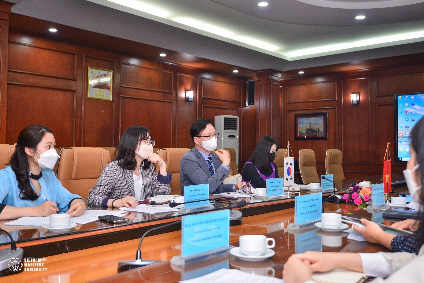 Hai bên đã trao đổi về chương trình giảng viên tình nguyện Trường Đại học Hàng hải Quốc gia Mokpo sang giảng dạy tiếng Hàn Quốc tại Trường Đại học Hàng hải Việt Nam; cũng như đề xuất các chương trình trao đổi giảng viên và sinh viên. Sau cuộc họp, đoàn Trường MMU đã đi thăm các giảng đường và cơ sở vật chất của Trường Đại học Hàng hải Việt Nam.
