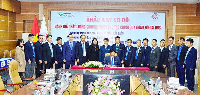 Về phía Trường Đại học Hàng hải Việt Nam có PGS. TS. Phạm Xuân Dương, Phó Bí thư Đảng ủy, Hiệu trưởng Nhà trường, Chủ tịch Hội đồng Tự đánh giá; PGS. TS. Nguyễn Khắc Khiêm - Bí thư Đảng ủy, Chủ tịch Hội đồng Trường; các Thầy trong Ban Giám hiệu, Trưởng các Khoa: Kinh tế Vận tải biển, Kỹ thuật cơ khí, Thiết kế tàu và Công trình ngoài khơi, Xây dựng Công trình thủy; Thủ trưởng các đơn vị có liên quan và các thầy, cô trong Hội đồng Tự đánh giá.