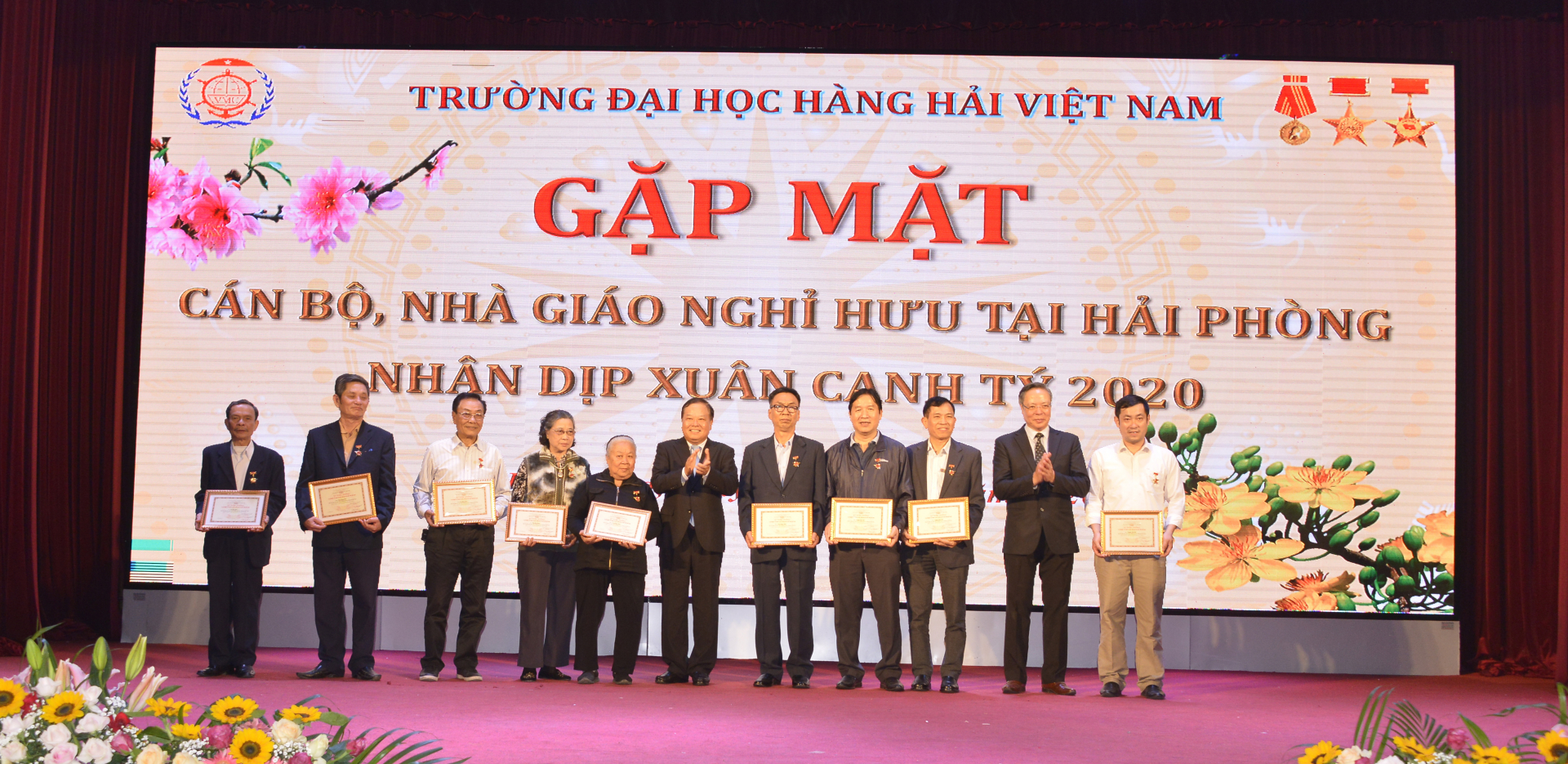 Trong không khí mừng Đảng, mừng Xuân, mừng đất nước đổi mới, trong thời khắc rộn ràng của đất trời chuyển mình sang xuân, chiều ngày 15/1, tại Hội trường A8, PGS.TS Phạm Xuân Dương – Phó Bí thư phụ trách Đảng ủy, Hiệu trưởng Nhà trường chủ trì cuộc gặp mặt cán bộ, nhà giáo nghỉ hưu tại Hải Phòng nhân dịp Xuân Canh Tý 2020, nhằm báo cáo kết quả công tác của Trường sau một năm, đồng thời mừng thọ các hội viên Hội Cựu giáo chức Trường Đại học Hàng hải Việt Nam. Đây cũng là dịp để tri ân những đóng góp, cống hiến của Hội cựu giáo chức vì sự nghiệp phát triển chung của Nhà trường.