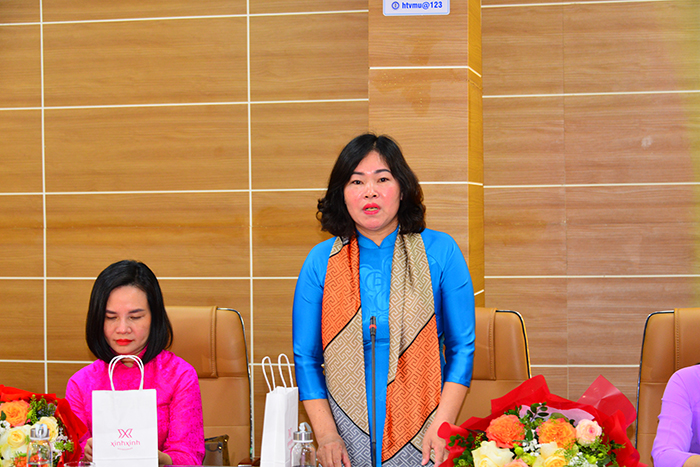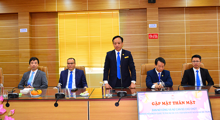 Phát biểu tại buổi Gặp mặt, PGS.TS. Phạm Xuân Dương - Hiệu trưởng Nhà trường thay mặt lãnh đạo Trường gửi những lời chúc tốt đẹp nhất đến các cô giáo, các nữ cán bộ, nhân viên và các em nữ sinh viên của Nhà trường; chúc các chị, các em luôn trẻ trung, xinh đẹp, hạnh phúc; luôn thành công trong công tác giảng dạy, quản lý, nghiên cứu và học tập.