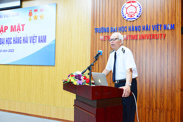 Tại buổi gặp mặt, PGS.TS Phạm Xuân Dương - Phó Bí thư Đảng ủy, Hiệu trưởng Nhà trường thay mặt Đảng ủy, Ban Giám Hiệu Trường Đại học Hàng hải Việt Nam bày tỏ lòng kính trọng và biết ơn của toàn thể CB, GV, CNV tới các hội viên đã có thời gian công tác, cống hiến, đóng góp, xây dựng vào sự phát triển chung đồng thời báo cáo một số hoạt động điển hình như công tác đào tạo và nghiên cứu khoa học, quan hệ quốc tế,…trong những năm vừa qua. Qua đây thầy Hiệu trưởng bày tỏ mong muốn tiếp tục nhận được sự cộng tác, đóng góp ý kiến xây dựng bằng trí tuệ, kinh nghiệm của mình cho sự nghiệp phát triển của Trường trong giai đoạn mới - thời đại chuyển đổi số đang phát triển.