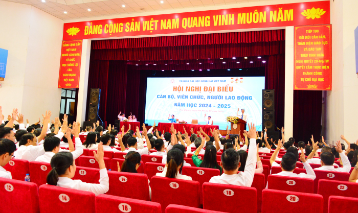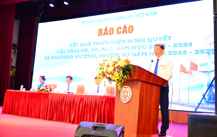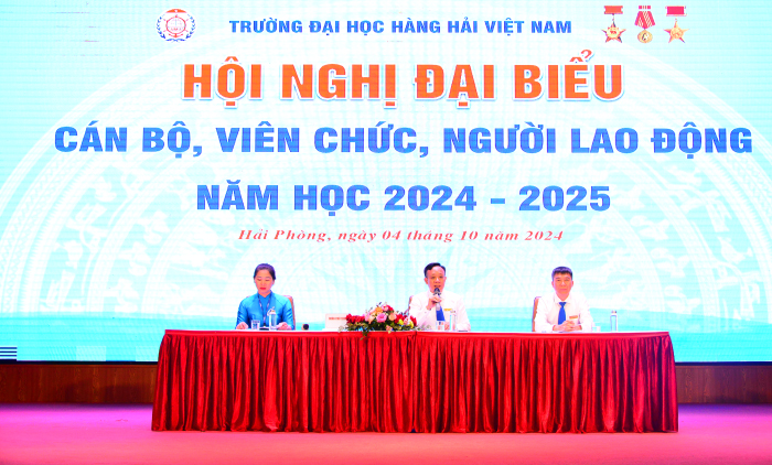 Ngày 04/10/2024, Trường Đại học Hàng hải Việt Nam đã tổ chức Hội nghị đại biểu cán bộ, viên chức và người lao động (CB, VC, NLĐ) năm học 2024-2025 để đánh giá kết quả thực hiện Nghị quyết Hội nghị CB, VC, NLĐ và tổng kết phong trào thi đua năm học 2023-2024, đồng thời triển khai phương hướng, nhiệm vụ năm học 2024-2025, giải đáp các kiến nghị, đề xuất của CB, VC, NLĐ và bầu Ban Thanh tra nhân dân Trường nhiệm kỳ 2024 - 2026.