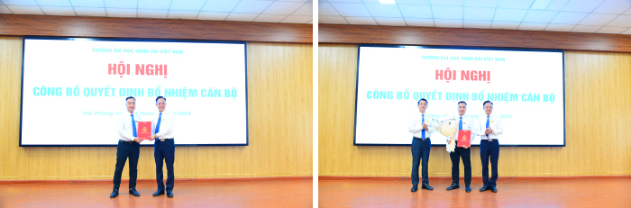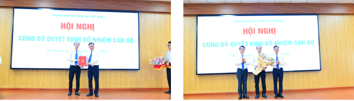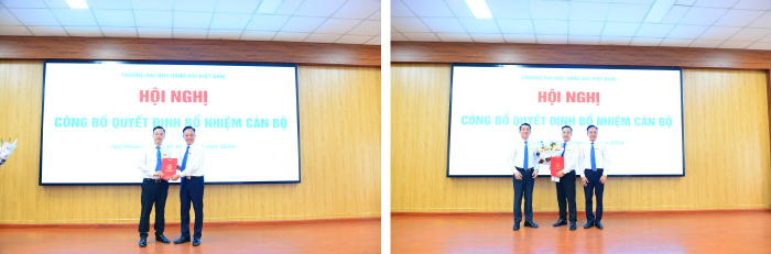 Trong lời phát biểu nhận nhiệm vụ, các đồng chí mới được bổ nhiệm cảm ơn sự tin tưởng, ủng hộ của Lãnh đạo Trường, sự tín nhiệm của tập thể cán bộ, giảng viên, người lao động tại các đơn vị đồng thời thể hiện sự quyết tâm sẽ cố gắng hết mình trên cương vị mới, góp phần xây dựng Trường Đại học Hàng hải Việt Nam thành Trường Đại học trọng điểm quốc gia, có uy tín, hội nhập với khu vực và thế giới.