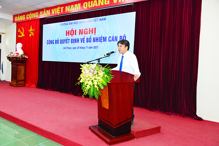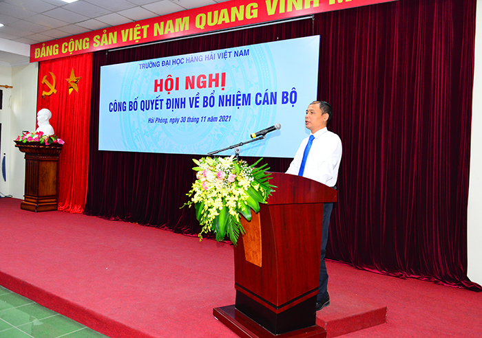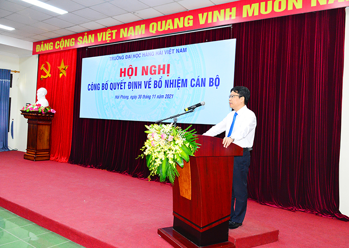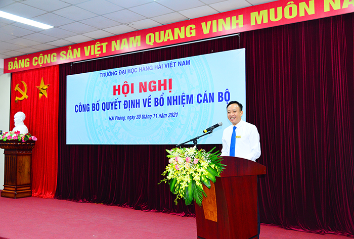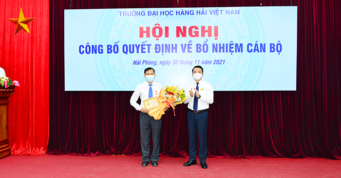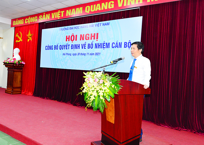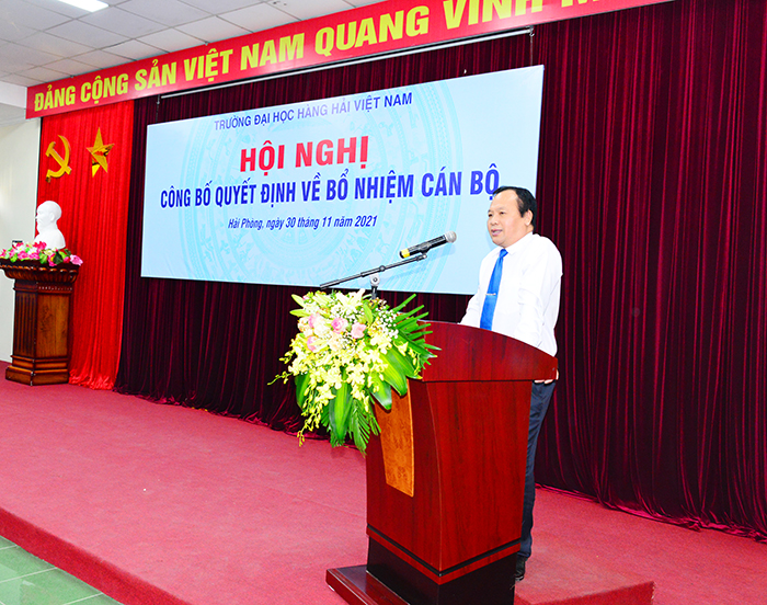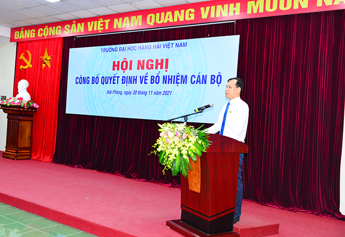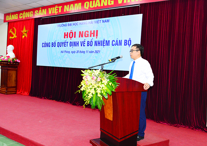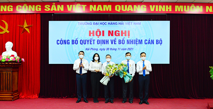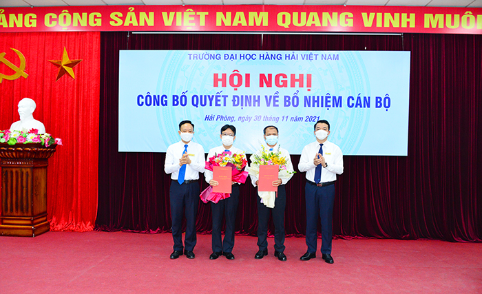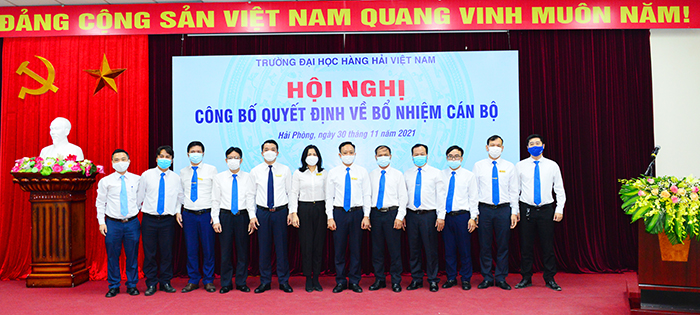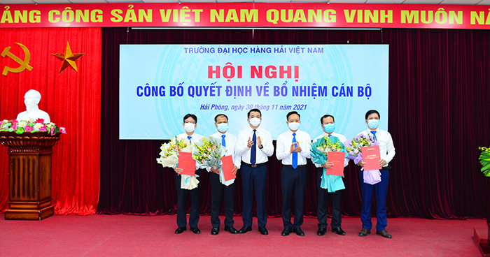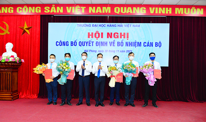 08h00 ngày 30/11/2021, Trường Đại học Hàng hải Việt Nam đã long trọng tổ chức Lễ công bố quyết định bổ nhiệm và bổ nhiệm lại cán bộ thuộc các Khoa, Viện, Phòng, Trung tâm dưới sự chủ trì của PGS.TS Phạm Xuân Dương – Phó Bí thư Đảng ủy, Hiệu trưởng Nhà trường nhằm kiện toàn và hoàn thiện bộ máy lãnh đạo các đơn vị.
