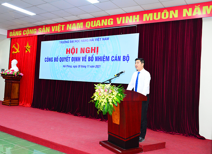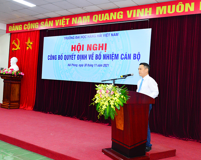 Thừa lệnh của Ban Thường vụ Đảng ủy Trường, đồng chí Nguyễn Vương Thịnh – Chánh văn phòng Đảng ủy, Trường Đại học Hàng hải Việt Nam công bố các Quyết định của Ban Thường vụ Đảng ủy Trường về công tác cán bộ:
