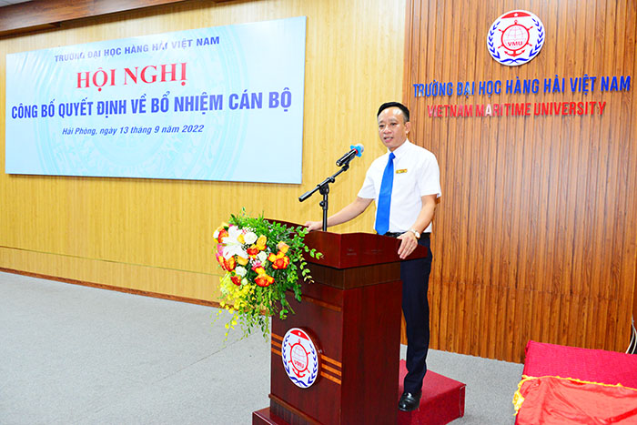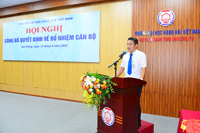 02 đồng chí mới được bổ nhiệm cảm ơn sự tin tưởng của lãnh đạo Trường Đại học Hàng hải Việt Nam đồng thời nhấn mạnh sẽ cố gắng hết mình trên cương vị mới, góp phần xây dựng VMU trở thành một Đại học lớn, có uy tín, hội nhập với khu vực và thế giới.