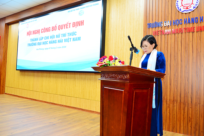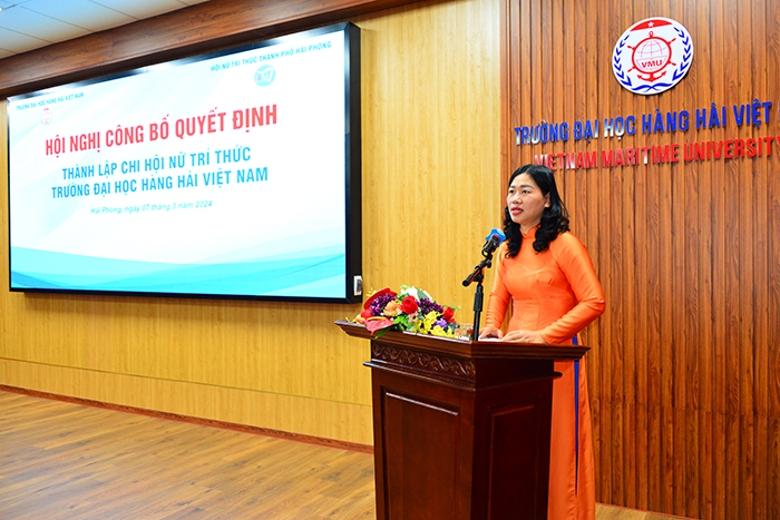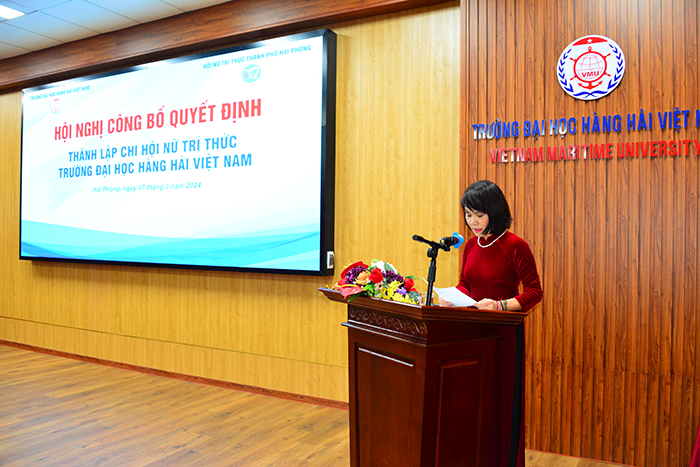 Thừa ủy quyền của Chủ tịch Hội NTT TP HP, ThS. Trần Thị Bích Hằng - UV BCH Hội Nữ tri thức thành phố Hải Phòng công bố các quyết định thành lập Chi hội Nữ trí thức Trường Đại học Hàng hải Việt Nam, Quyết định chỉ định Ban chấp hành, Cơ cấu nhân sự Ban chấp hành Chi hội Nữ trí thức Trường. Cụ thể: