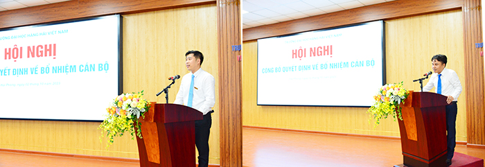 Trong lời phát biểu nhận nhiệm vụ, các cán bộ mới được bổ nhiệm đã cảm ơn sự tin tưởng, ủng hộ của Lãnh đạo Trường, đồng thời thể hiện sự quyết tâm sẽ cố gắng hết mình trên cương vị mới, góp phần xây dựng Trường Đại học Hàng hải Việt Nam thành Trường Đại học trọng điểm quốc gia, có uy tín, hội nhập với khu vực và thế giới.